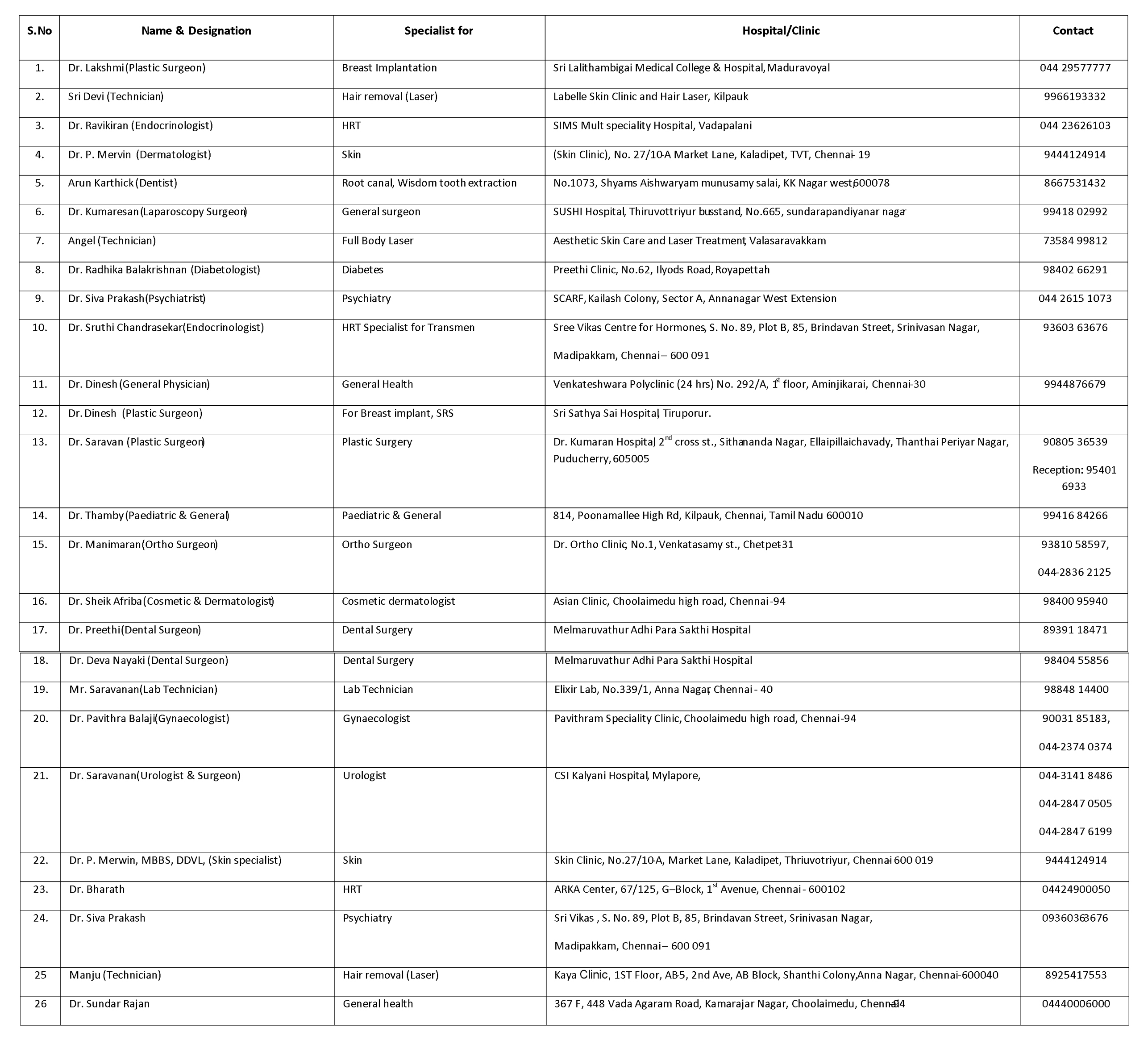 With the support of Tamil Nadu State AIDS Control Society, TARGETED INTERVENTION and PEHCHAN programs are conducted. Grateful to the Government and Private Health Care providers who have been with us over 17 years.